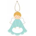 2 Anges en bois tourné Bleu 7cm - Enfant + Colombe