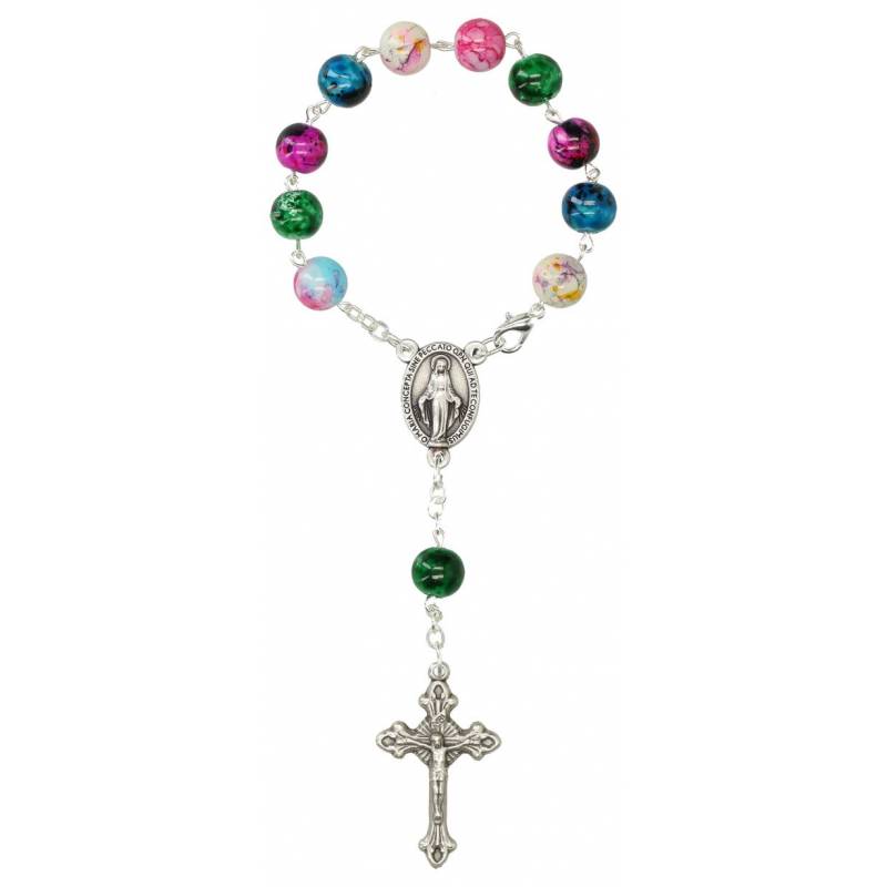 Bracelet-chapelet - grains en verres noire - médaille Miraculeuse et...