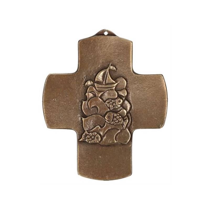 Bracelet sur élastique avec grains Lave noire + croix