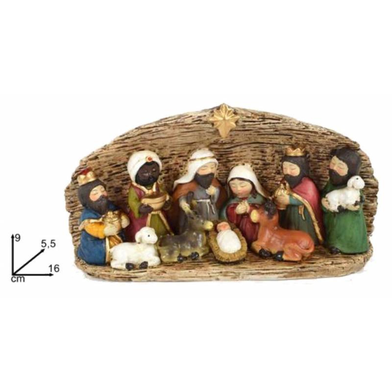 Nativité en bois scuplté - 10 cm - Naturel