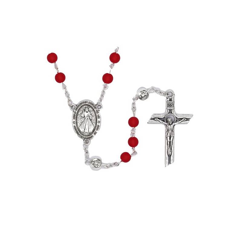 Chapelet grains rouge 6 mm + Christ Miséricordieux