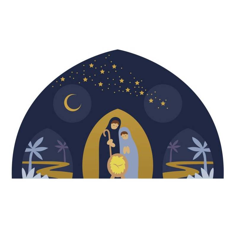 Boog met LED-verlichting en 5-delige kerststal van 10 cm in houtsnijwerk...