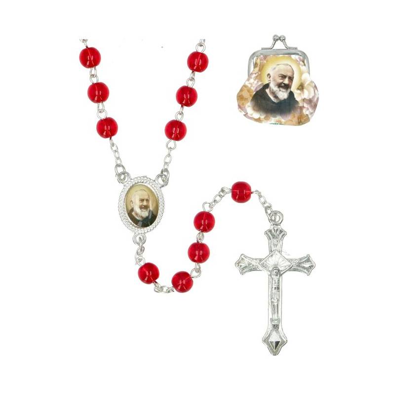Rozenkrans met 8mm witte kralen en 11mm rode hartjes