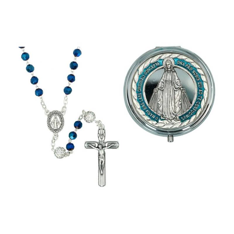 Rozenkrans blauw gemarmerde kralen 8 mm