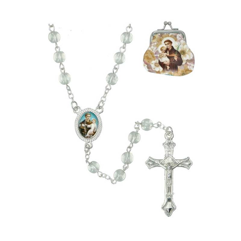 Rozenkrans met 8mm witte kralen en 11mm rode hartjes