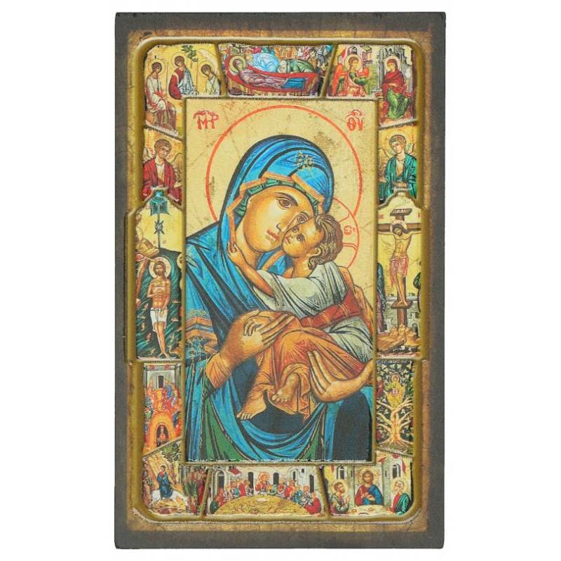 Rozenkrans blauw gemarmerde kralen 8 mm