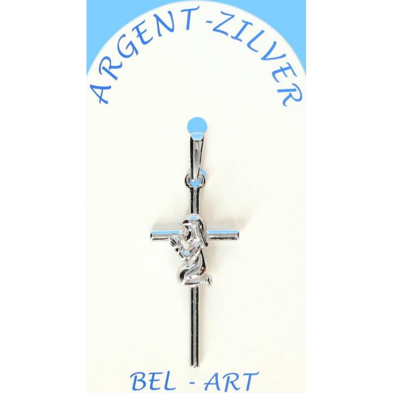 Rhodium zilveren kruis met vleugels 15 X 10 mm